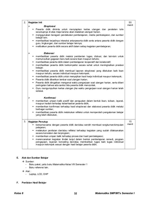 Rpp matematika kelas viii semester 2.