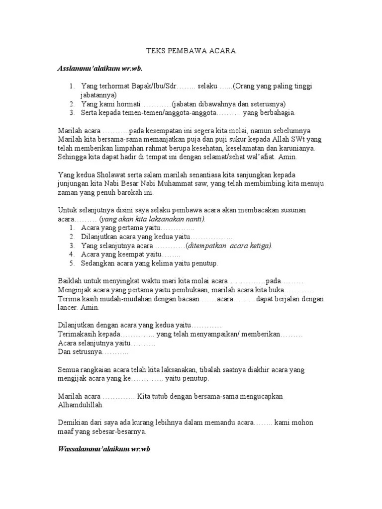 Adapun berbagai contoh sesuai tema mengenai contoh teks mc formal singkat, antara lain. Contoh mc acara 1 muharram jalan moren. Naskah pembawa acara formal, contoh teks pembawa acara rapat dinas, contoh susunan acara rapat, teks pembawa acara rapat karang taruna, contoh pembukaan . Contoh teks pembawa acara formal seminar . Entah gimana ceritanya, kemarin saya ditunjuk menjadi pembawa acara, alias mc (master of ceremony) acara formal di kantor. Mc acara seminar yang diselenggarakan secara online. Kumpulan mc acara formal sosialisasi kumpulan contoh teks mc source: Silakan di nikmati kumpulan naskah . Demikian contoh teks naskah mc formal dan informal. Iya butuh naskah mc supaya acara berlangsung dengan baik. Contoh acara formal antara lain upacara kenegaraan, upacara bendera, wisuda, upacara pelantikan, upacara adat, rapat kerja, seminar, workshop, . Teks mc upacara pembukaan source: