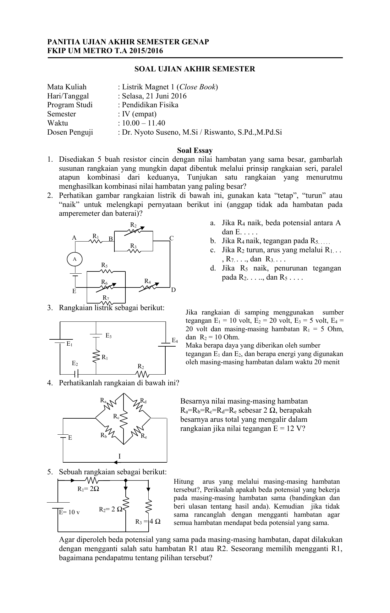 Contoh Soal Essay Rangkaian Listrik : Doc Kis Kisi Soal High Order Thinking Listrik Dinamis Smp Kelas Ix Semester I Nur Lailatin Nisfah Academia Edu - Jadi, tegangan listrik suatu rangkaian tersebut adalah 60 volt.